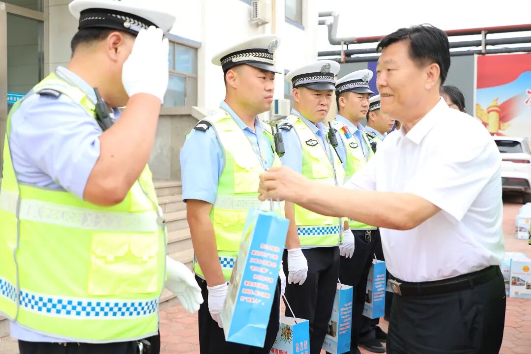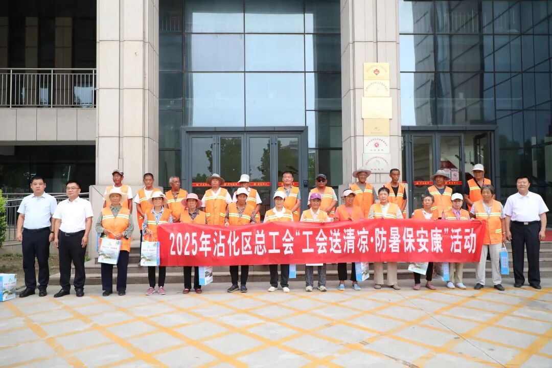 7月15日,沾化区总工会启动2025年“工会送清凉 防暑保安康”慰问活动。区委副书记刘忠礼,区人大常委会党组成员、区总工会党组书记、主席牟同忠及区总工会领导班子成员为奋战在劳动一线的环卫工、交警、快递员、货车司机等送去夏日里的清凉与慰问。