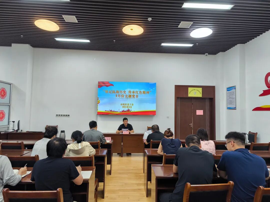 9月3日,沾化区总工会党支部开展“铭记抗战历史,传承红色精神”主题党日活动,全体党员干部齐聚一堂,以“理论学习 + 思想洗礼 + 实践服务”的形式,推动主题党日活动走深走实、见行见效。区总工会党组副书记、副主席李宪国主持会议,全体干部职工参加活动。