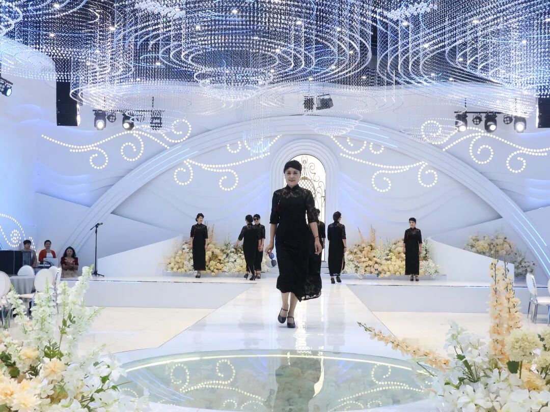 2025年9月21日,沾化区秀良大酒店内华光璀璨,一场以“弘扬国粹,绽放芳华”为主题的旗袍模特培训班汇报演出在此盛大举行。区委统战部副部长王玮,区委宣传部三级主任科员赵艳霞,区总工会二级主任科员宋岩梅,区妇联党组成员、区妇女儿童事业发展中心主任安平,区社会救助综合服务中心副主任花敏,区社会工作部工会主席徐文超出席活动,基层工会三十多名女职委主任及百余名女职工齐聚一堂,共赴这场传统与现代交融的视觉盛宴。