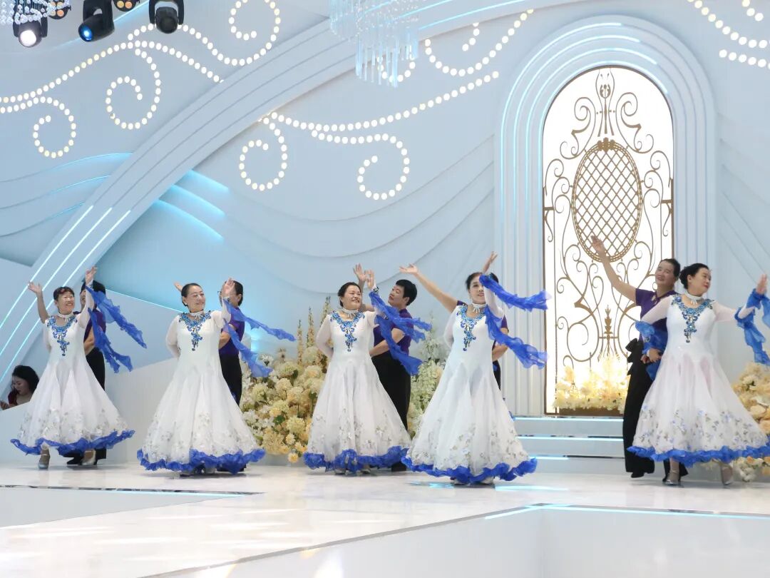 一曲悠扬的《家乡的小河》奏响,舞者们默契配合,舞步轻盈如灵动的流水。他们在旋转与相拥间,将对家乡的深深眷恋融入每一个灵动的舞姿,传递出浓浓的乡土情怀,勾起人们心底最柔软的回忆。
