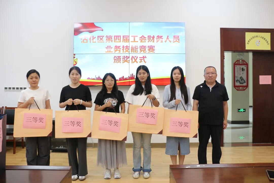 本次竞赛由市总工会统一组织阅卷,不仅保障了竞赛的专业与公平,更成功激发了全区工会财务人员的学习热情,将竞赛打造成了“以赛促学、以赛提能”的亮眼平台。竞赛最终决出一等奖 2 名、二等奖 3 名、三等奖 5 名,其中,前9名将代表沾化区参加市总决赛。颁奖现场,区总工会党组成员、区工人文化宫主任宋涛为获奖选手颁发奖品,对他们在竞赛中取得的优异成绩表示祝贺,并鼓励全体获奖选手珍惜荣誉、再接再厉,充分发挥模范带头作用,将竞赛中展现出的专业精神和过硬技能运用到实际工作中,持续提升业务能力和服务水平。