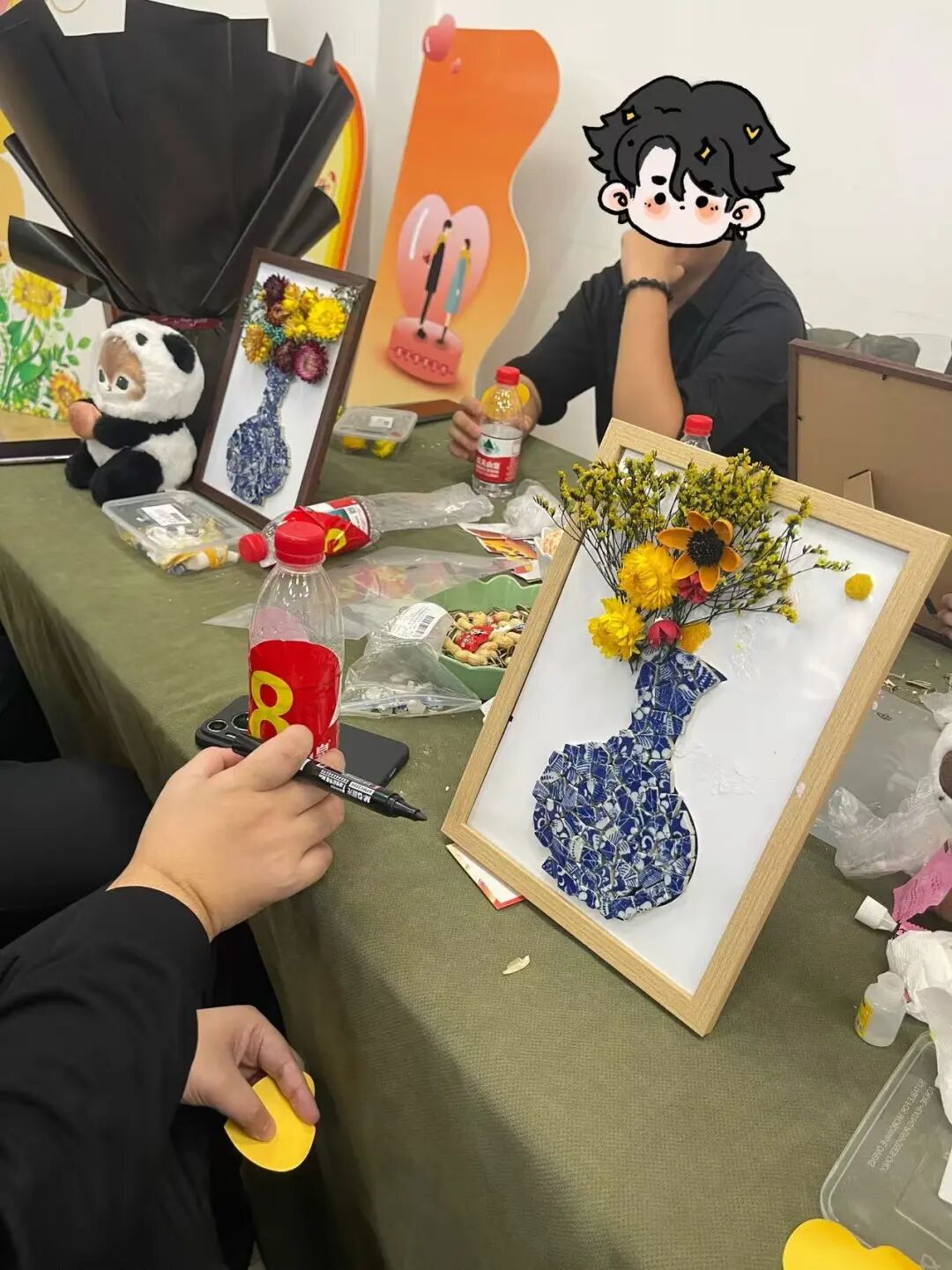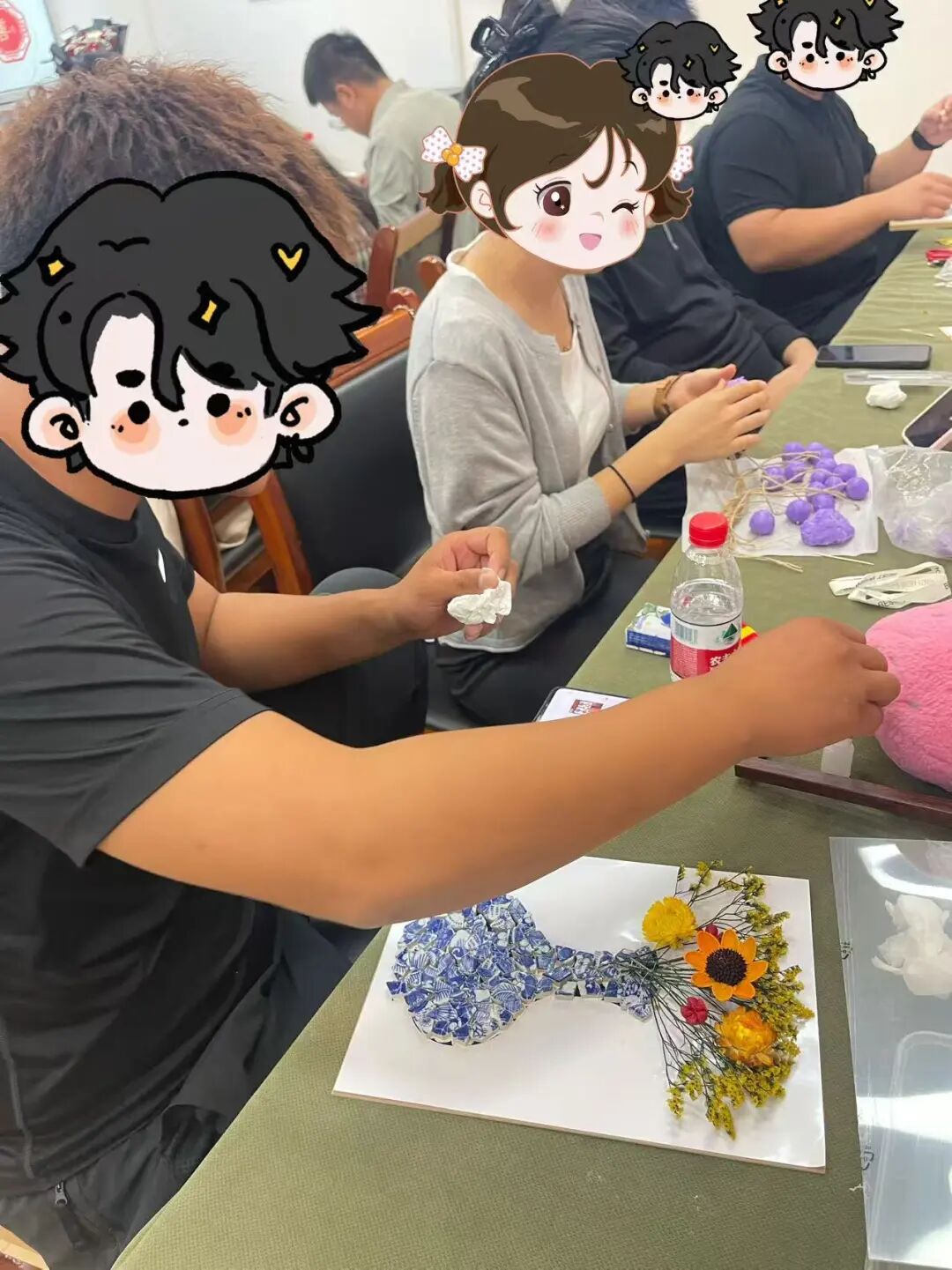 在“手工制作”环节,氛围转向温馨与静谧。青年男女们结对合作,在亲手制作手工葡萄皂与非遗青花瓷贴画的过程中低声交流,彼此间的距离在专注的协作与偶尔的会心一笑中悄然拉近,情谊在指尖流淌中慢慢积淀。