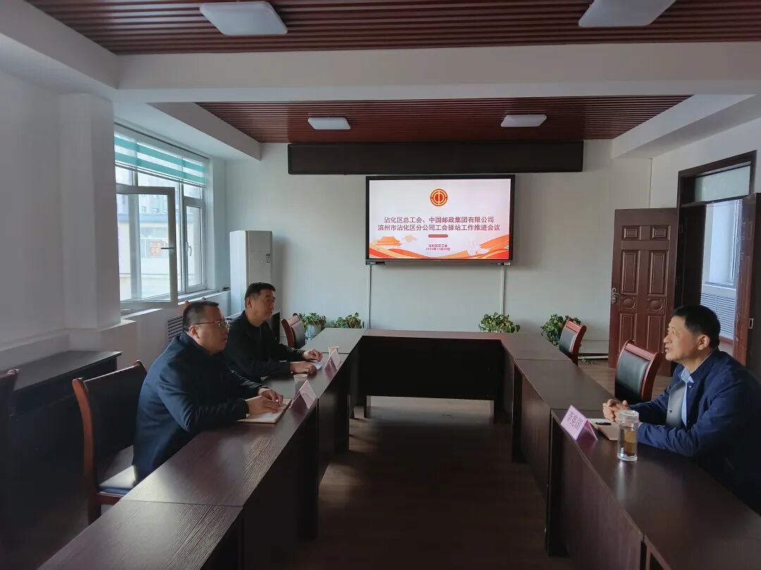 11月20日,区总工会、中国邮政集团有限公司滨州市沾化区分公司召开工会驿站工作推进会议。区总工会党组副书记、副主席李宪国,中国邮政集团滨州沾化分公司总经理朱希剑以及相关负责人出席会议。