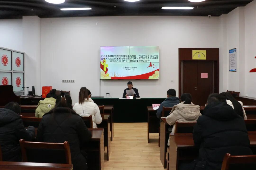 12月23日上午,沾化区总工会党组理论学习中心组举行2025年度第12次集体学习。区总工会党组副书记、副主席李宪国主持会议,区总工会党组成员、副主席宋连峰及各部室负责同志参加集体学习。