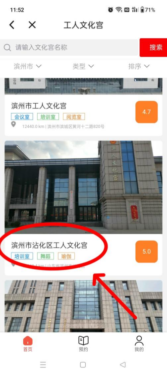 3、在“工人文化宫”页面找到“滨州市沾化区工人文化宫”,点击进入。