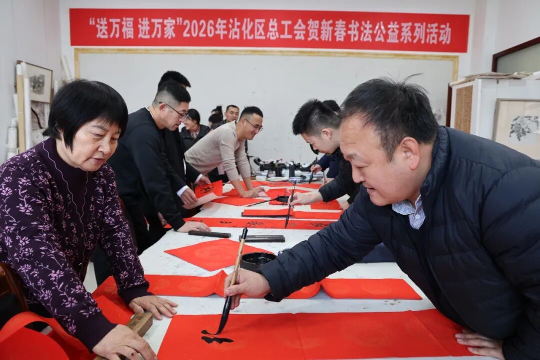 2月11日,由沾化区总工会主办的“送万福 进万家”书法公益活动在区工人文化宫圆满收官。山东省青联常委、省青年书协主席贾长庆,滨州市文联副主席、市书法家协会主席郭庆利,省书协发展工作部主任张国,省青年书协秘书长李泊潭等省市书法专家莅临现场,与书法爱好者一同挥毫泼墨,为广大职工群众送上饱含年味与美好祝福的新春文化礼包。