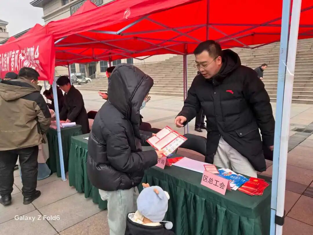 活动现场,工会工作人员化身“政策宣传员”,在招聘专区旁设立宣传咨询台,通过悬挂宣传横幅、发放宣传手册、现场答疑解惑等形式,向过往求职者、企业负责人详细讲解工会的性质、职能,建会入会的流程、条件,以及企业落实民主管理制度、依靠职工发展的好处,同时推广“齐鲁工惠”APP,引导职工便捷入会、享受工会服务,助力企业规范建会、凝聚发展合力。